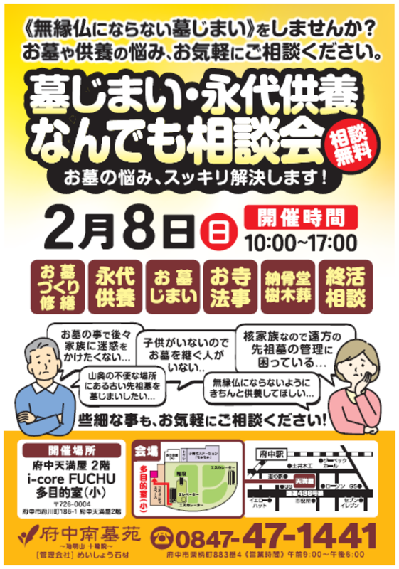 【2月8日開催】お墓の「困った」をスッキリ解決!無料相談会のお知らせ(天満屋府中店)